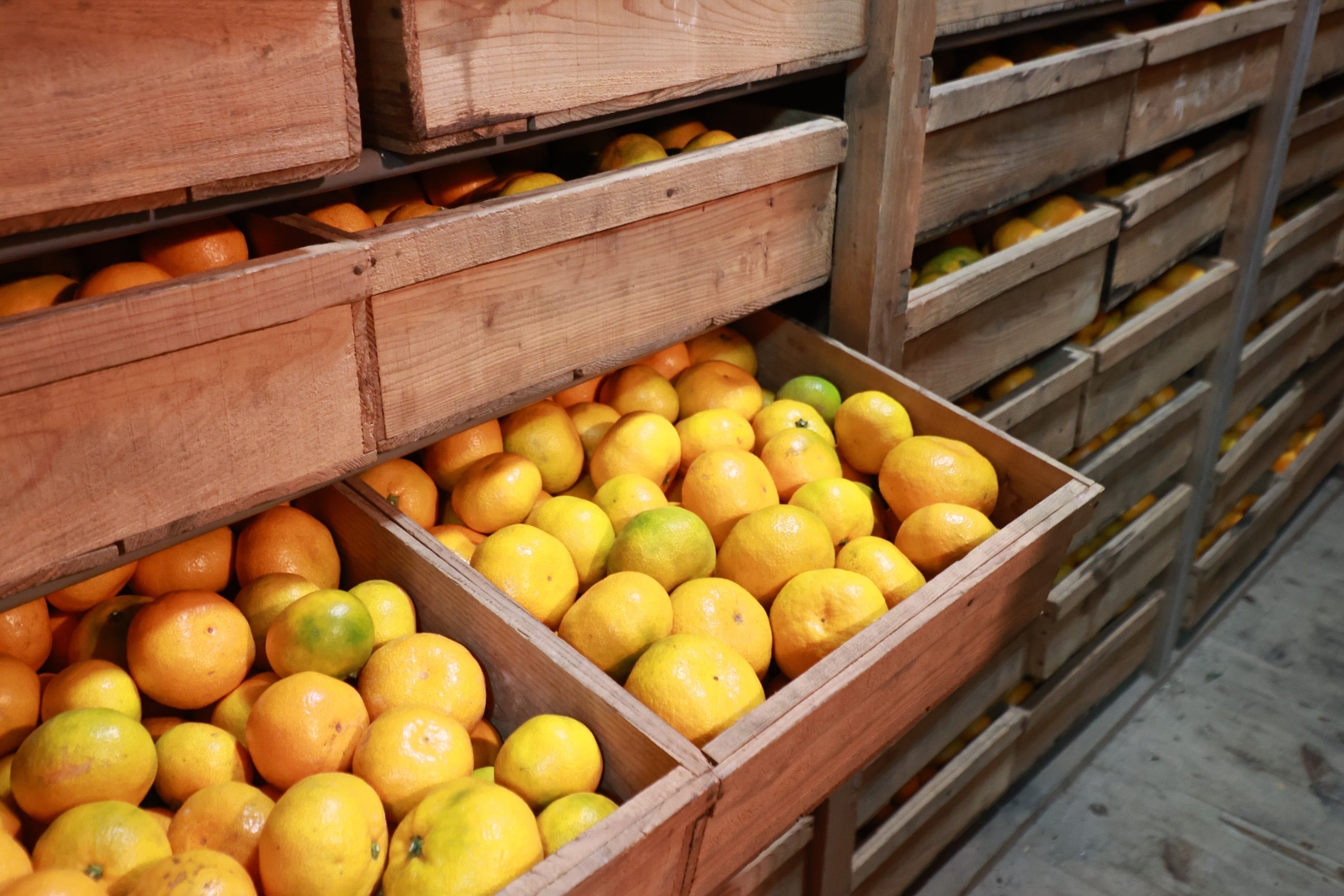 和歌山県海南市下津町で年末に収穫したみかんを貯蔵庫で昔ながらの手法で貯蔵して年明けに出荷する貯蔵みかん。品種は林系のみかんで晩生みかん。貯蔵することにより酸味が抜け甘味がましまろやかで味わい深い味に仕上がります。